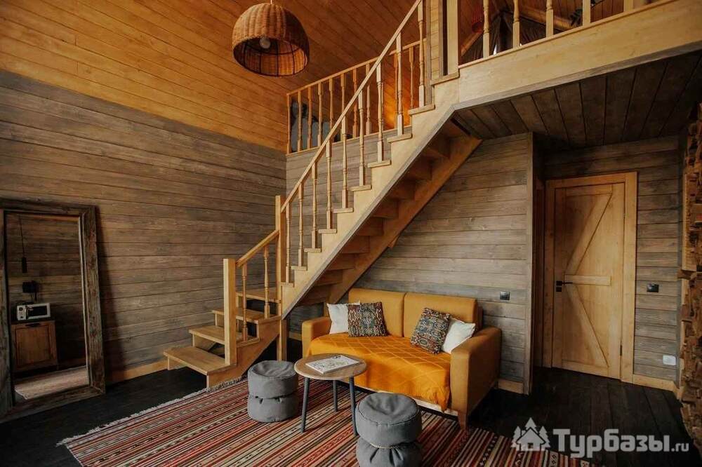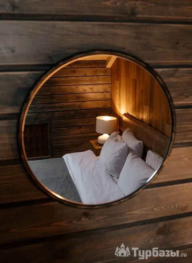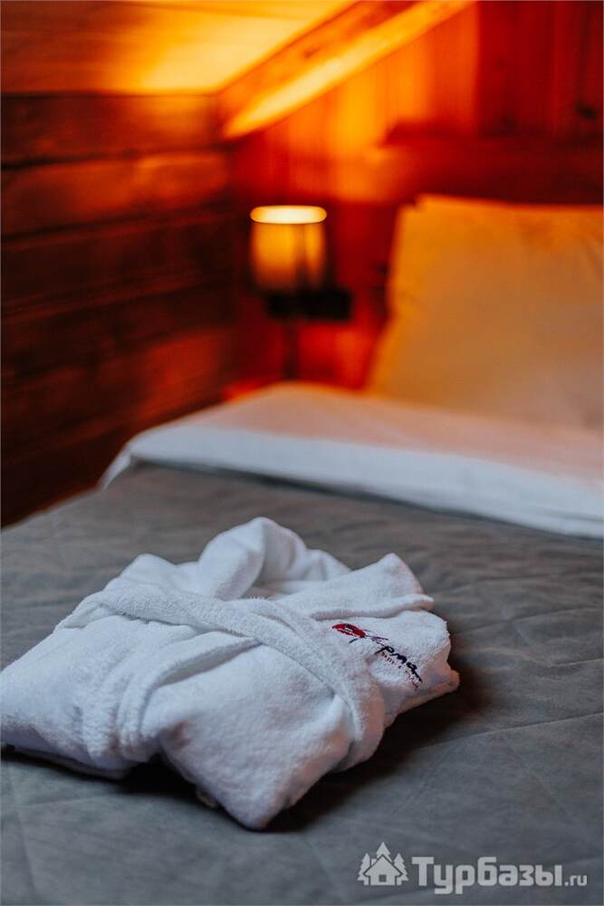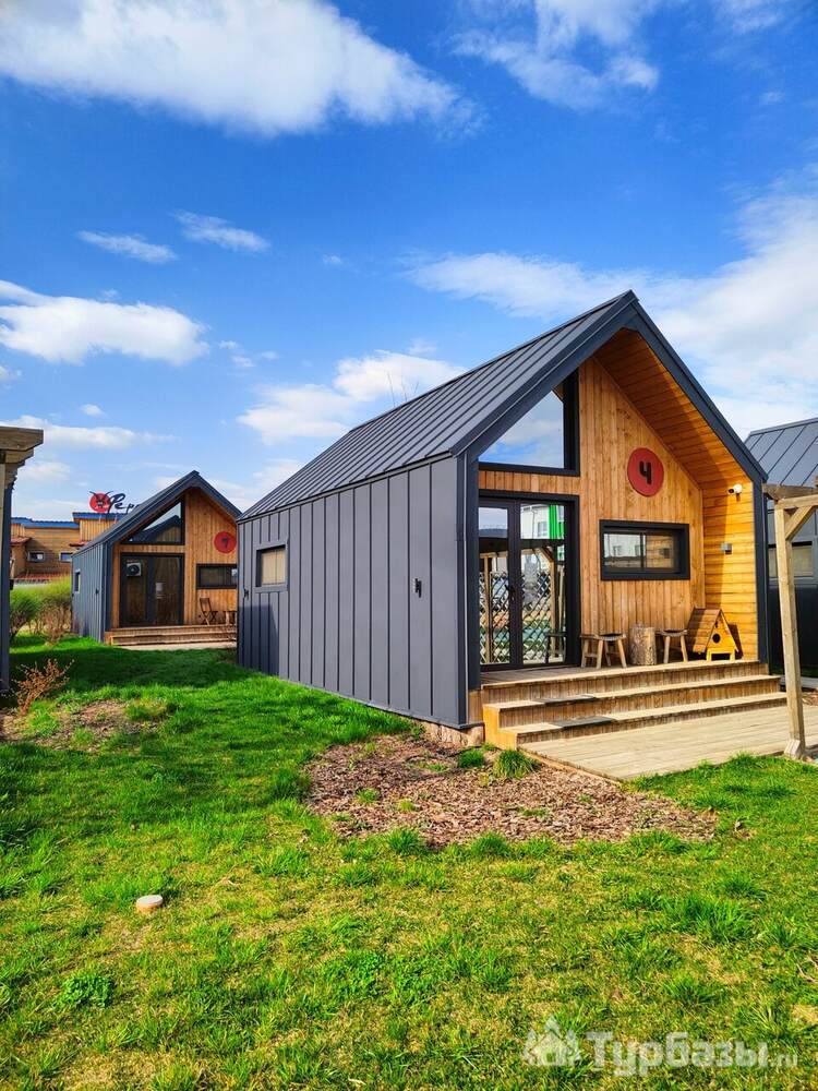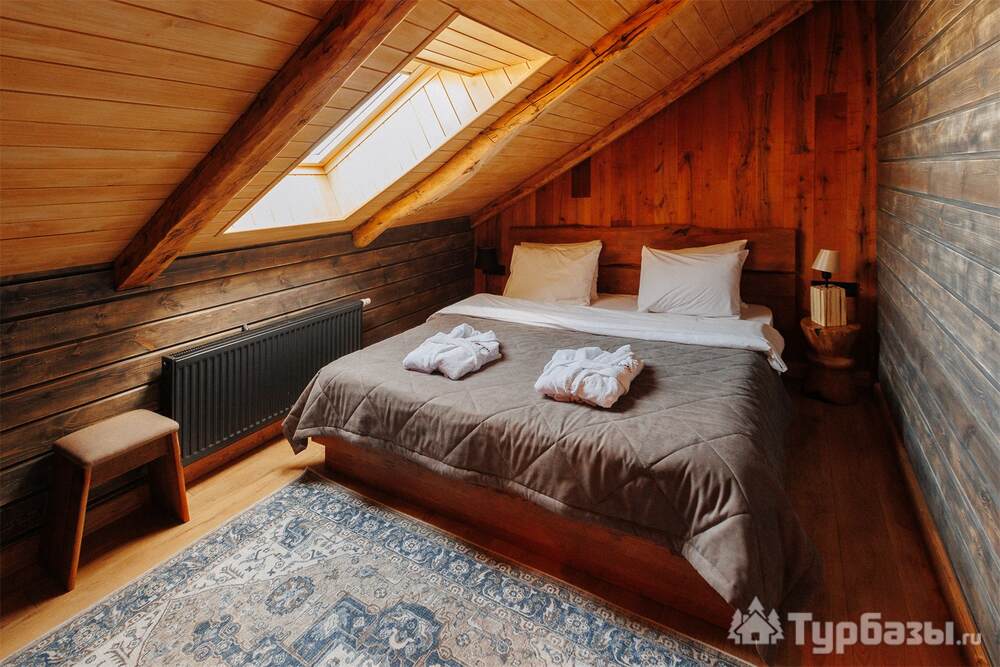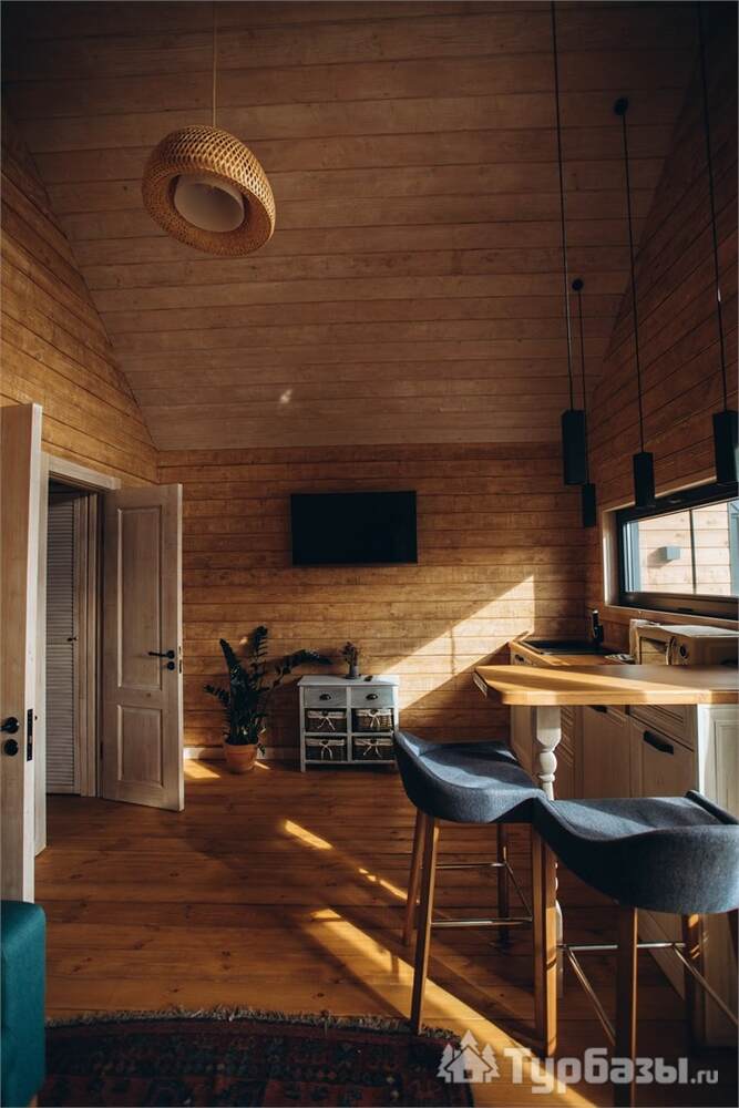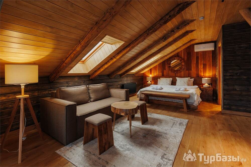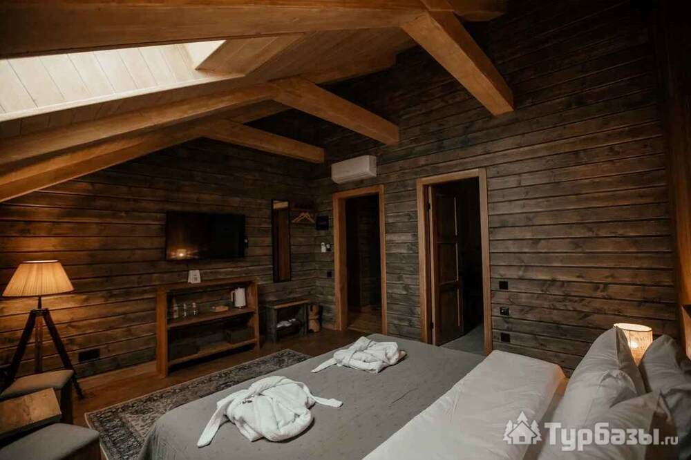 Архитектура комплекса выдержана в тёплой стилистике: домики, шале и барнхаузы аккуратно вписаны в ландшафт, а мебель из массива дерева и лоскутные одеяла усиливают впечатление «рукотворного уюта». Интерьеры не пытаются быть эклектичными — напротив, они дают пространство для природного фона: большие окна, террасы и веранды ориентированы на зелёные перспективы, так что основная «декорация» всегда остаётся на улице. Такое решение делает отдых менее «туристическим» и более интимным — как будто вы гостите в благоустроенной деревенской усадьбе.