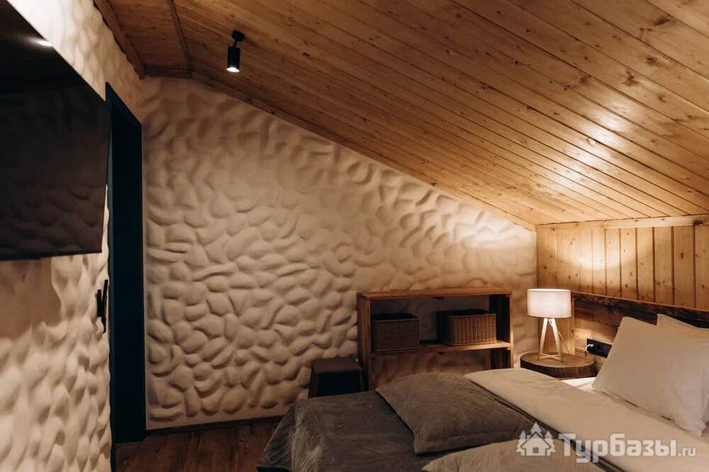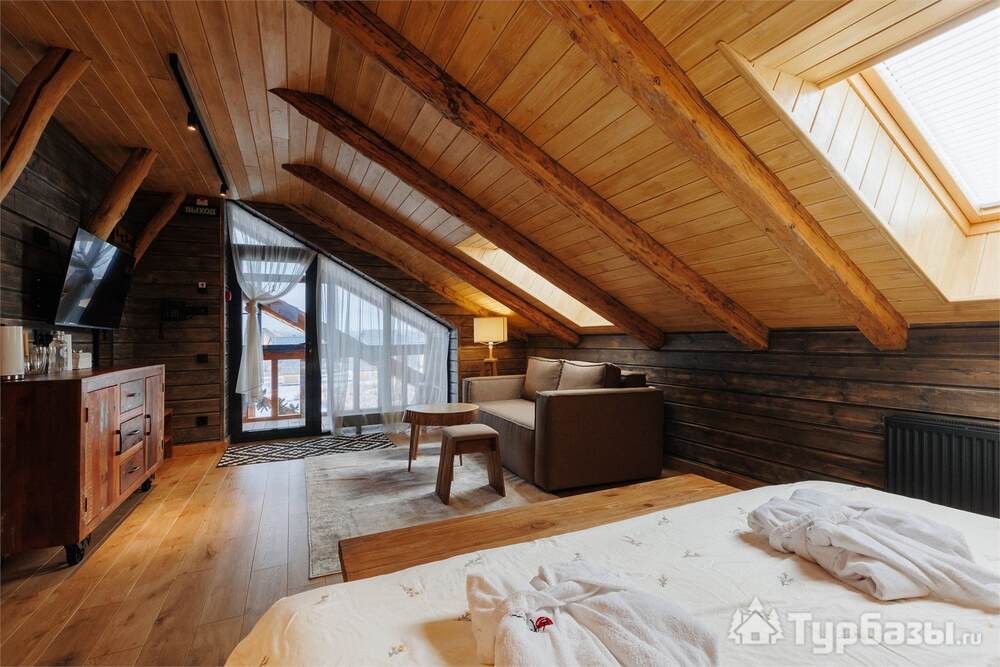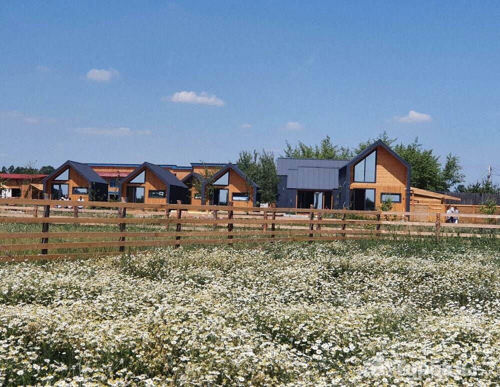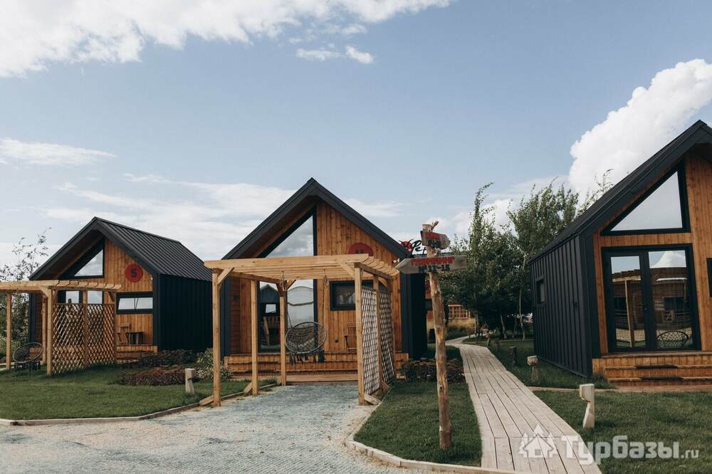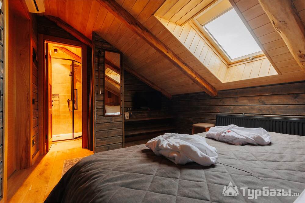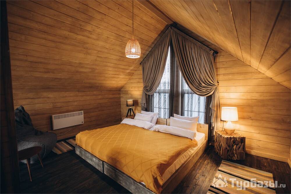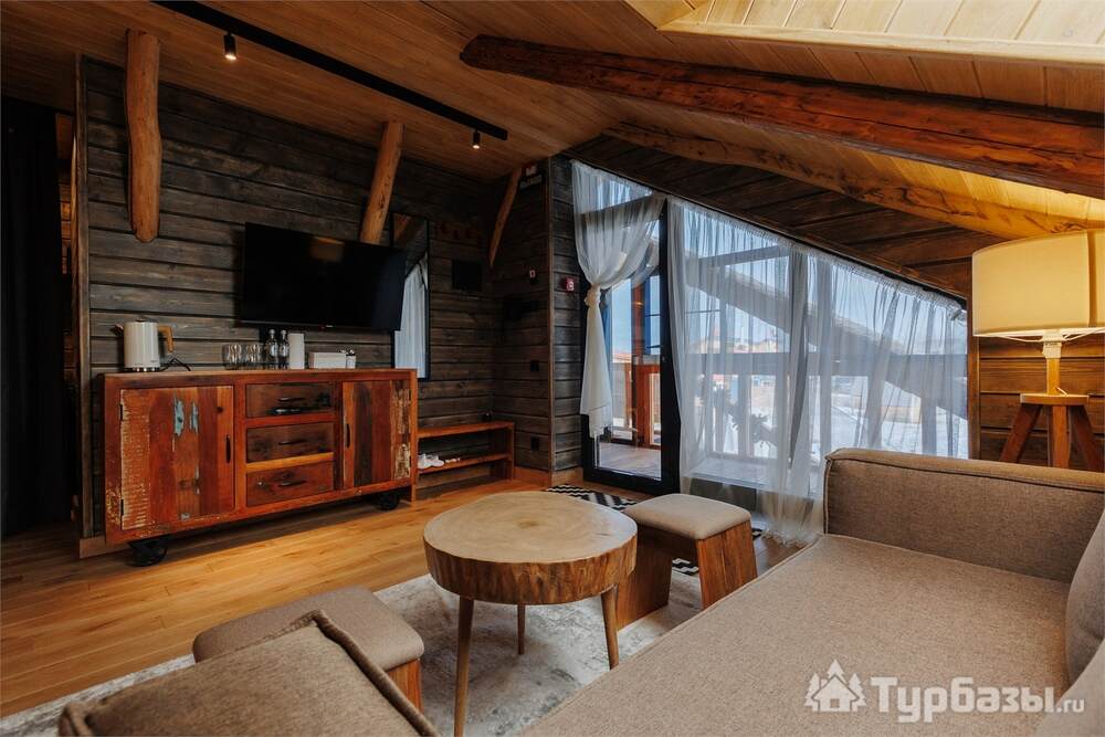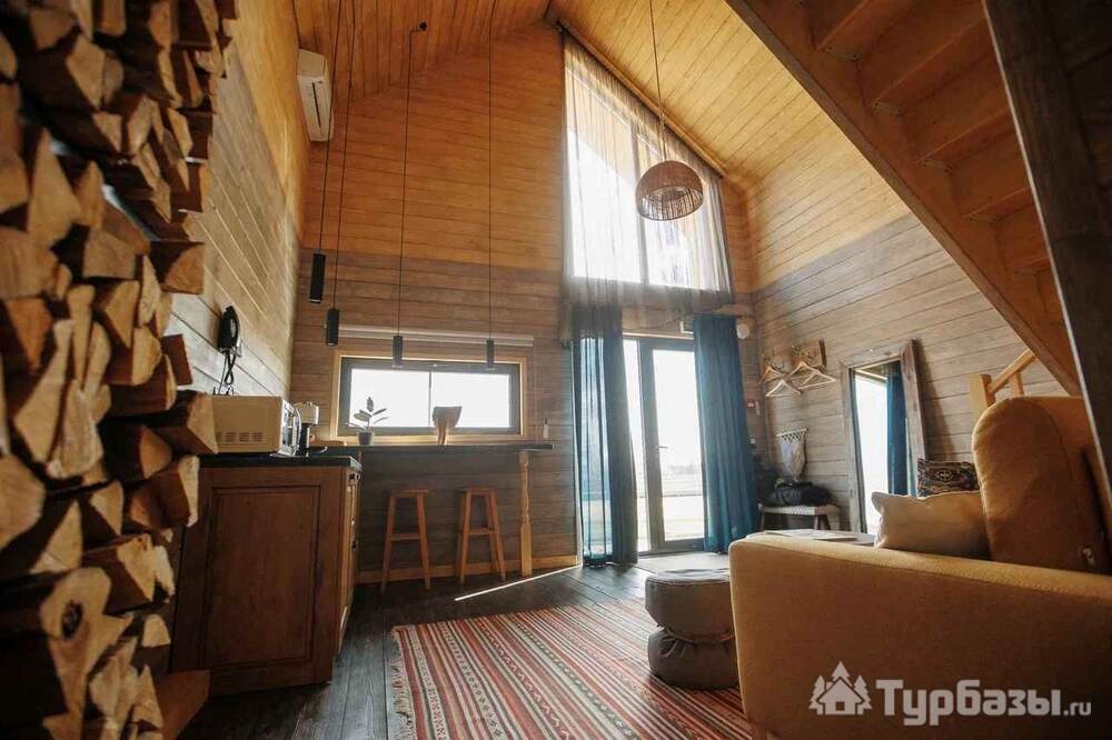 Архитектура комплекса выдержана в тёплой стилистике: домики, шале и барнхаузы аккуратно вписаны в ландшафт, а мебель из массива дерева и лоскутные одеяла усиливают впечатление «рукотворного уюта». Интерьеры не пытаются быть эклектичными — напротив, они дают пространство для природного фона: большие окна, террасы и веранды ориентированы на зелёные перспективы, так что основная «декорация» всегда остаётся на улице. Такое решение делает отдых менее «туристическим» и более интимным — как будто вы гостите в благоустроенной деревенской усадьбе.