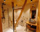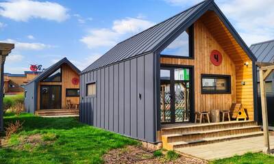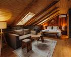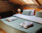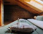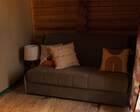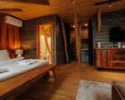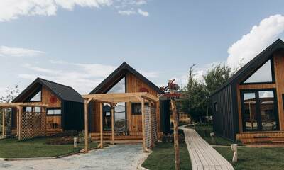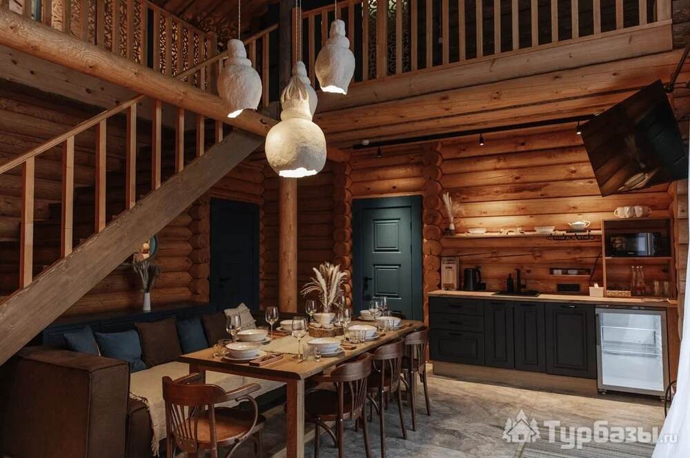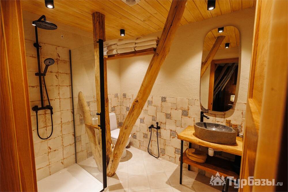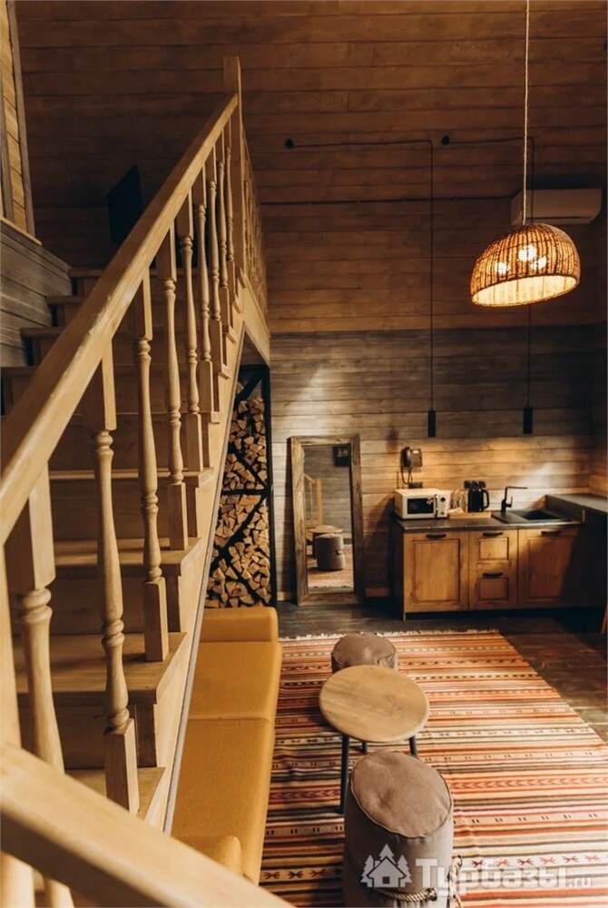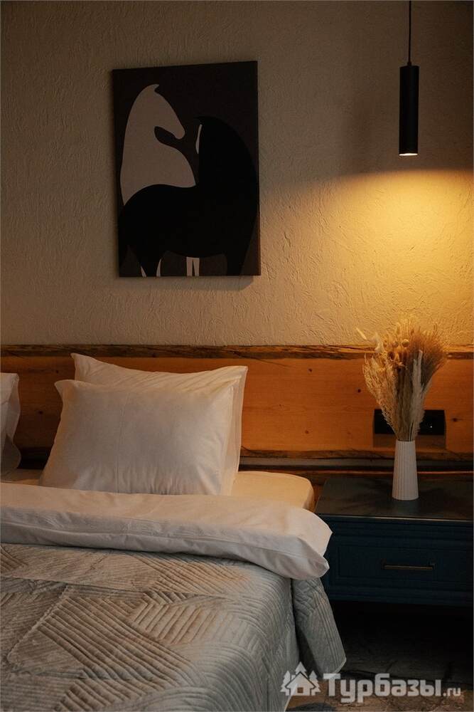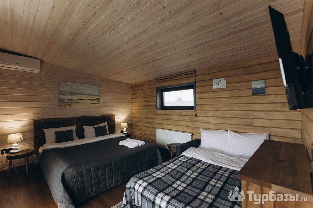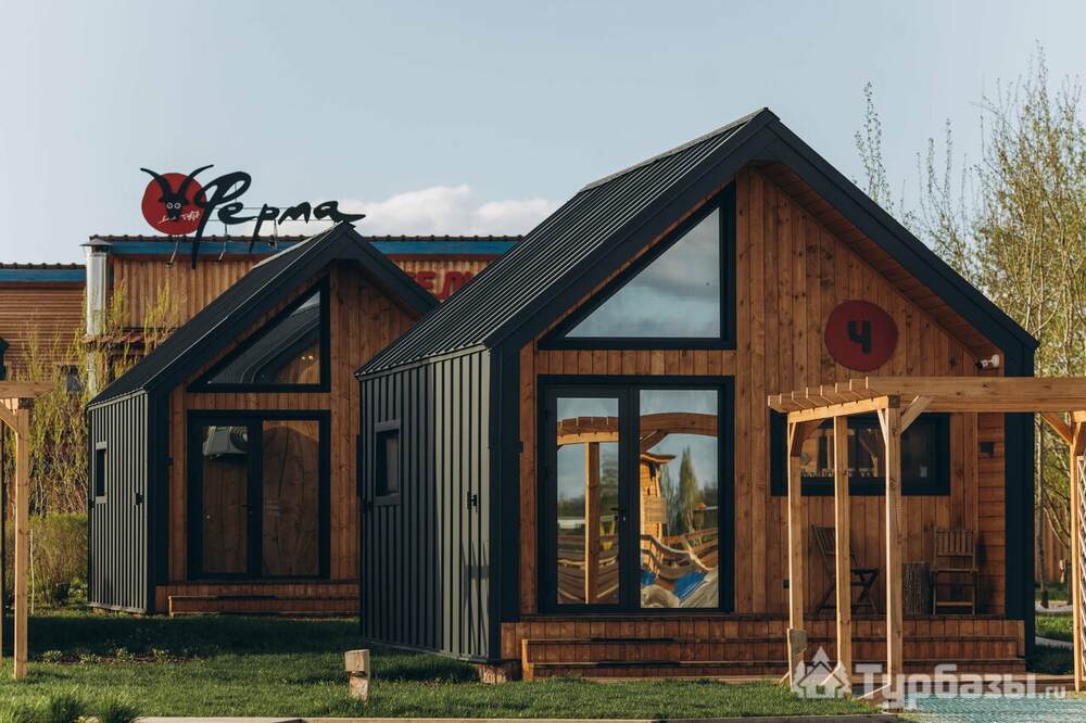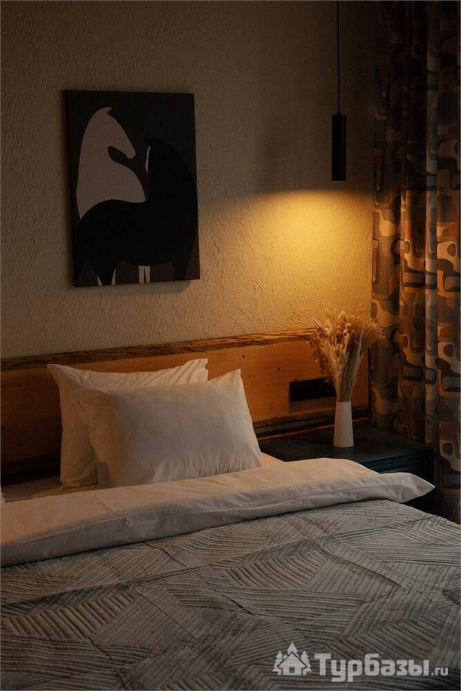 Архитектура комплекса выдержана в тёплой стилистике: домики, шале и барнхаузы аккуратно вписаны в ландшафт, а мебель из массива дерева и лоскутные одеяла усиливают впечатление «рукотворного уюта». Интерьеры не пытаются быть эклектичными — напротив, они дают пространство для природного фона: большие окна, террасы и веранды ориентированы на зелёные перспективы, так что основная «декорация» всегда остаётся на улице. Такое решение делает отдых менее «туристическим» и более интимным — как будто вы гостите в благоустроенной деревенской усадьбе.