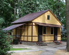 На протяжении всего года отдыхают на территории базы. Для любителей парилок предусмотрена «Русская» баня. Парная на дубовых дровах рассчитана на 12 человек. В летнее время после парики купаются в реке, а зимой в проруби. Есть двухэтажные бани с регулируемым ушатом. В большой гостиной комплекса расположена кожаная мебель. Гости пользуются холодильником, а разогревают блюда в микроволновой печи. Для приготовления пищи предусмотрен кухонный гарнитур с полным набором посуды.
