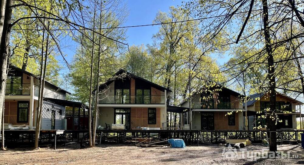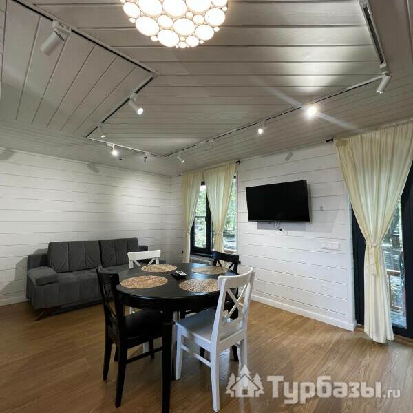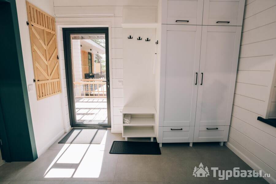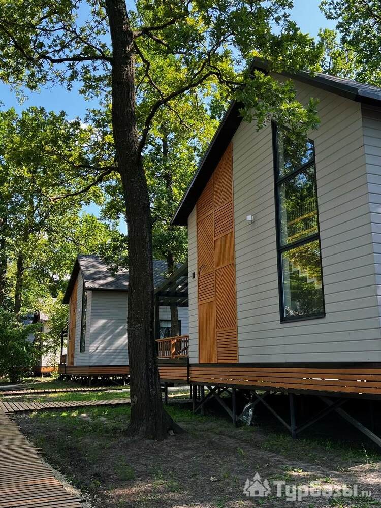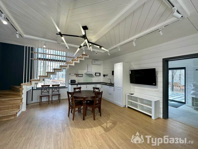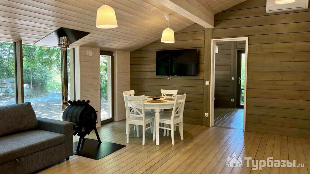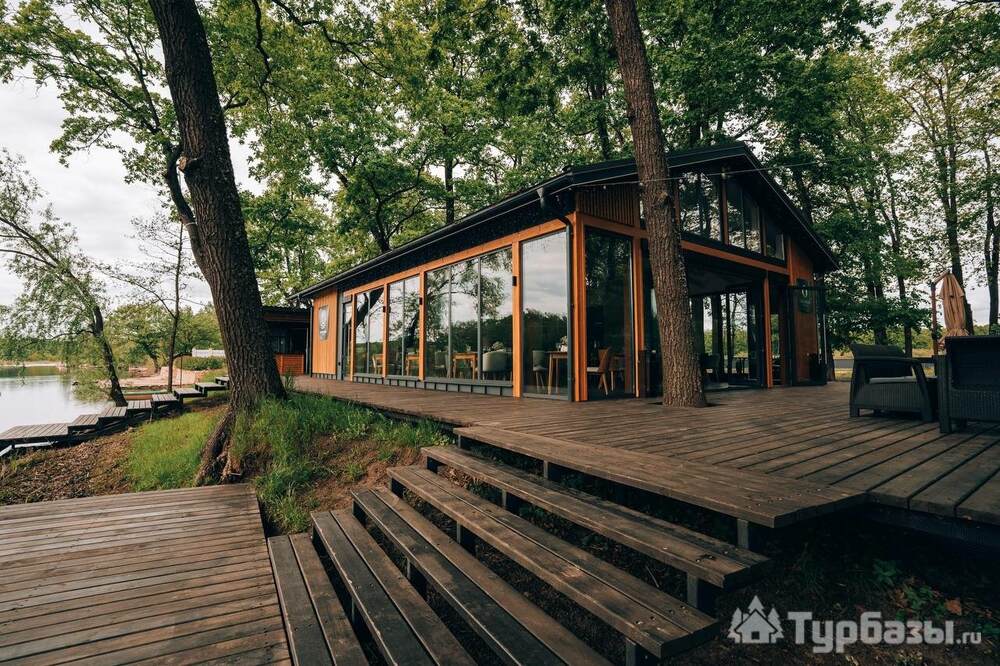 В основе комплекса — индивидуальные коттеджи различной вместимости: от компактных домиков для двоих до просторных семейных коттеджей с большими террасами. Жилые корпуса оформлены с заботой о функциональности и простоте, здесь есть всё, что нужно для отдыха: отдельные спальные зоны, оборудованные кухни и удобные гостиные. Большинство коттеджей выходит на реку или размещено так, чтобы обеспечить приватность в окружении зелёных насаждений.