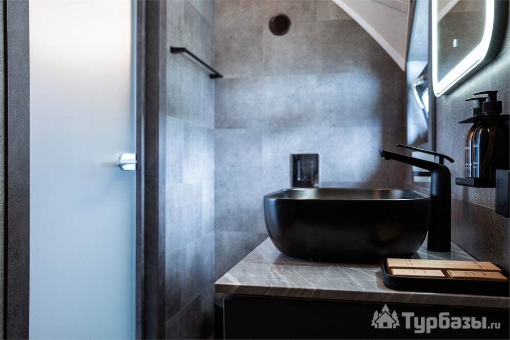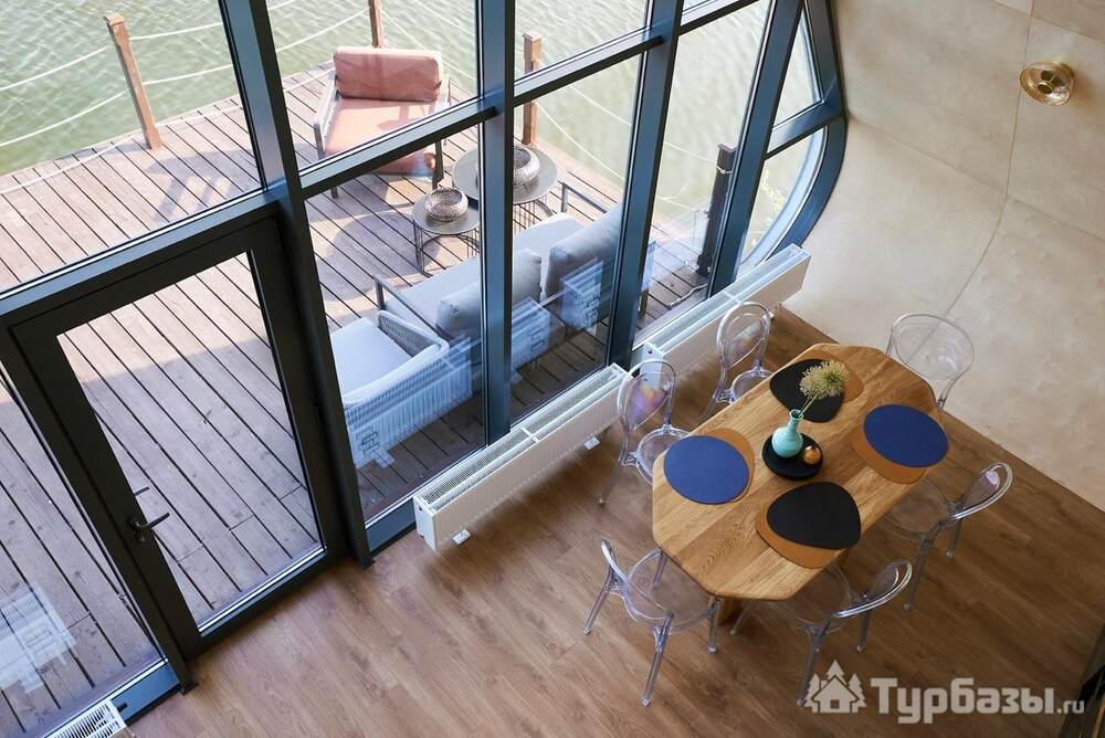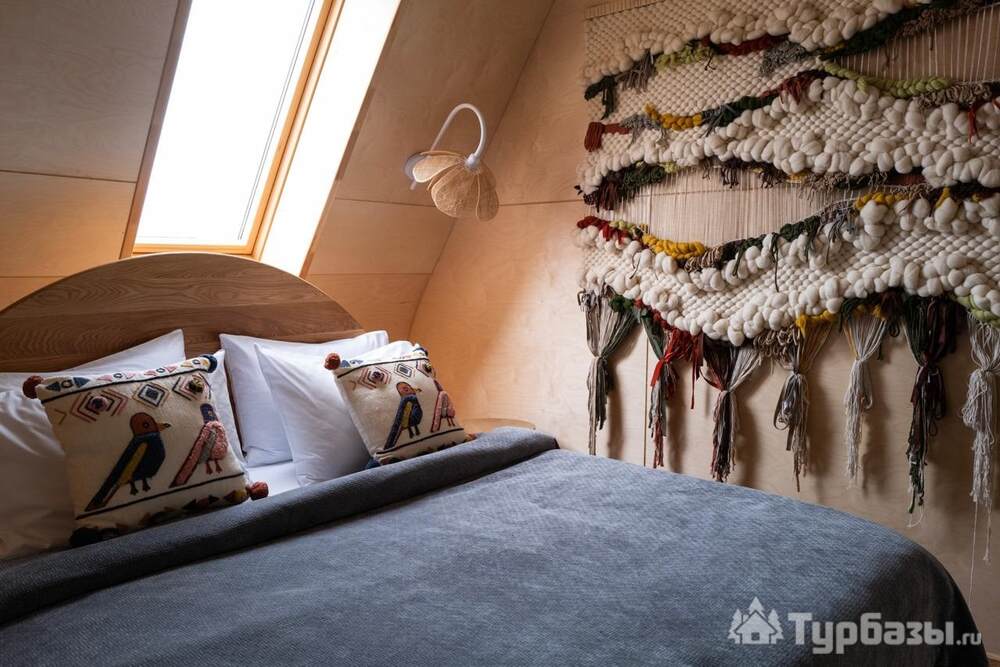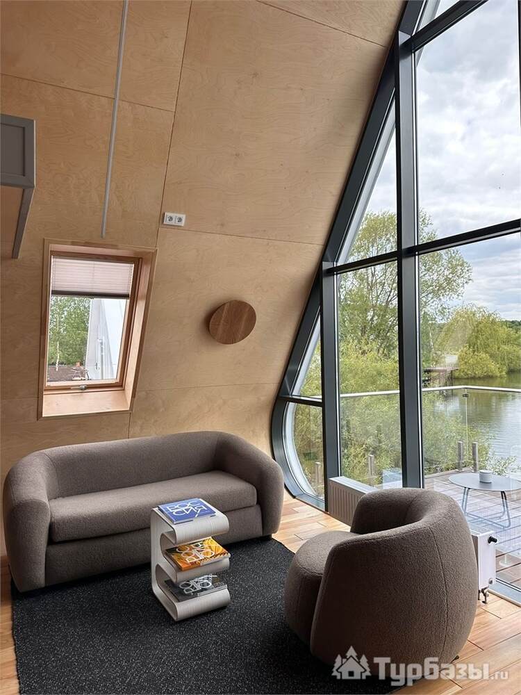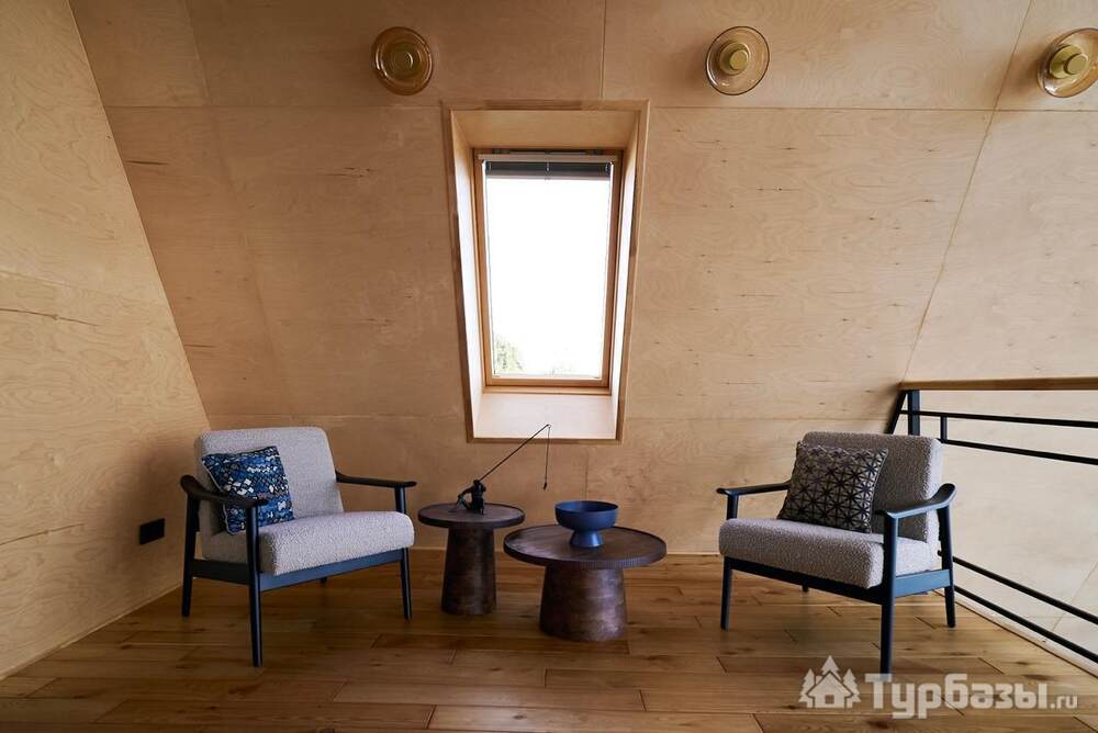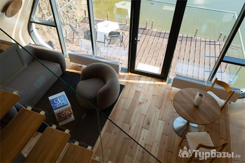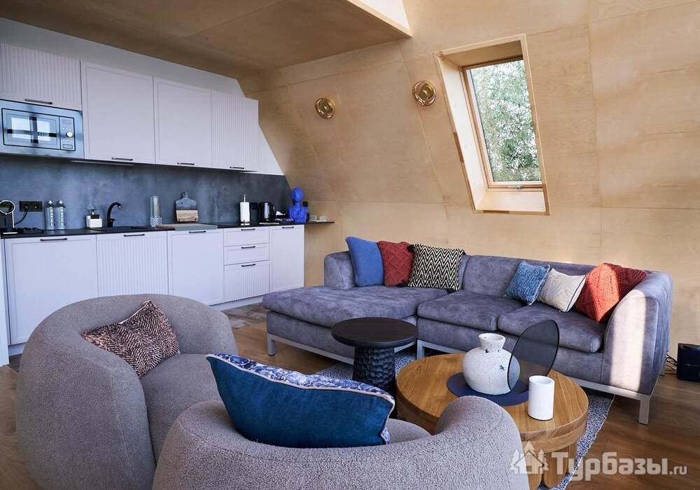 Комплекс представляет собой набор индивидуальных домов разной вместимости и планировки, каждый из которых обладает панорамными окнами и террасами с видом на озеро или окружающий природный ландшафт. Жилые корпуса органично вписываются в природный рельеф: архитектура подчеркивает связь с природой, а внутри гости находят все удобства для полноценного отдыха — просторную гостиную, спальню, оборудованную кухню и уютные зоны для совместного времяпрепровождения.