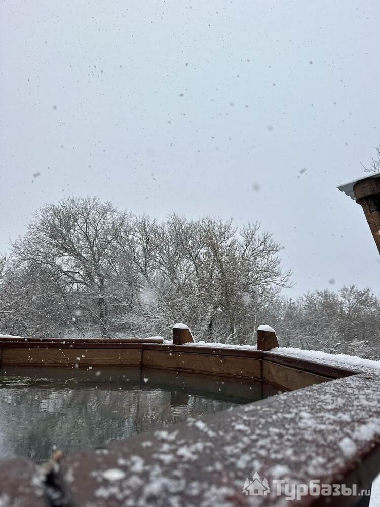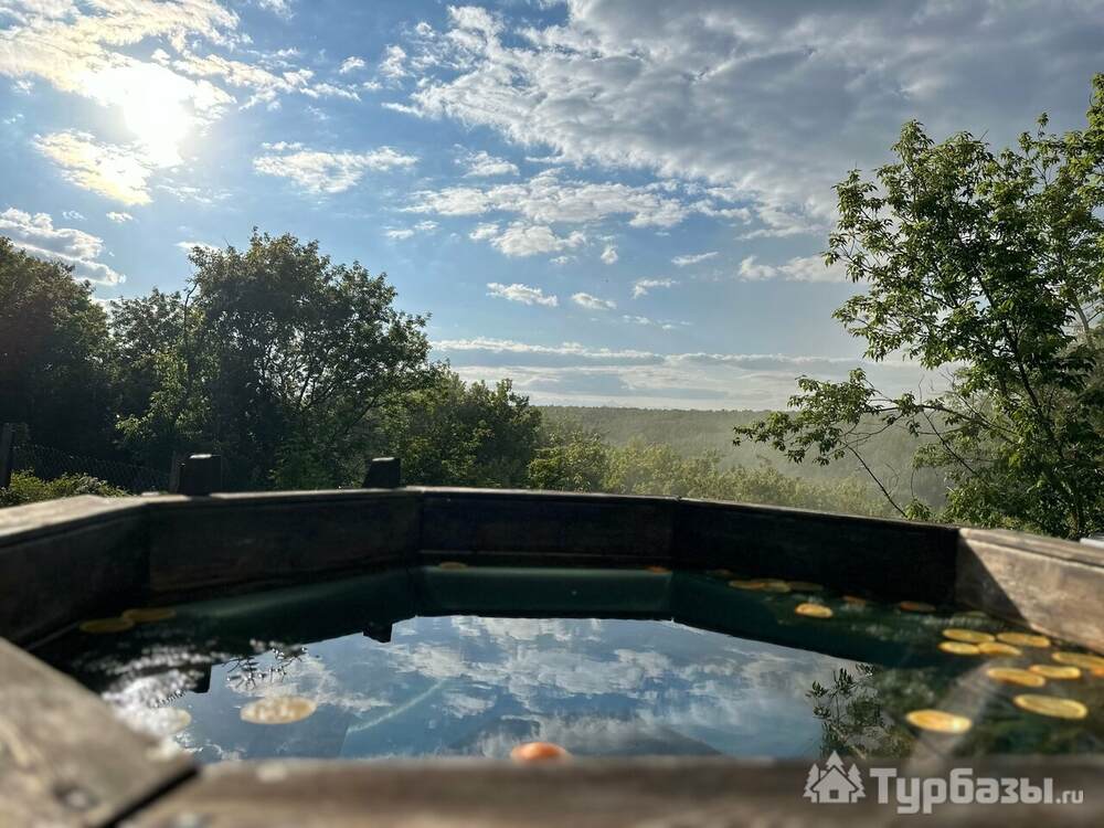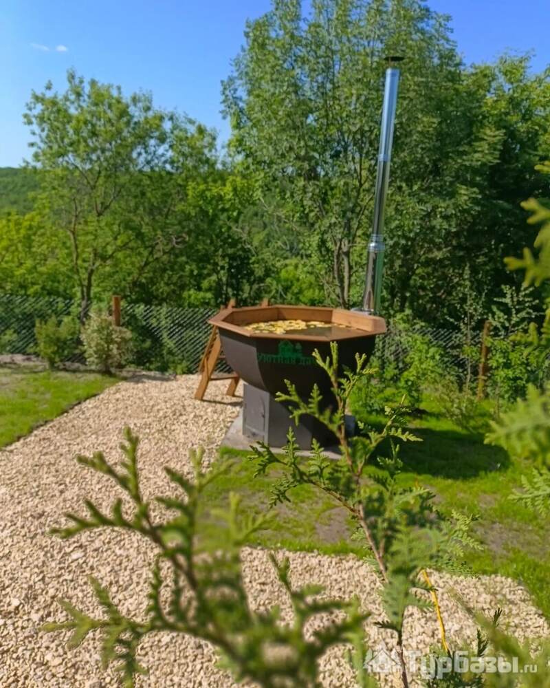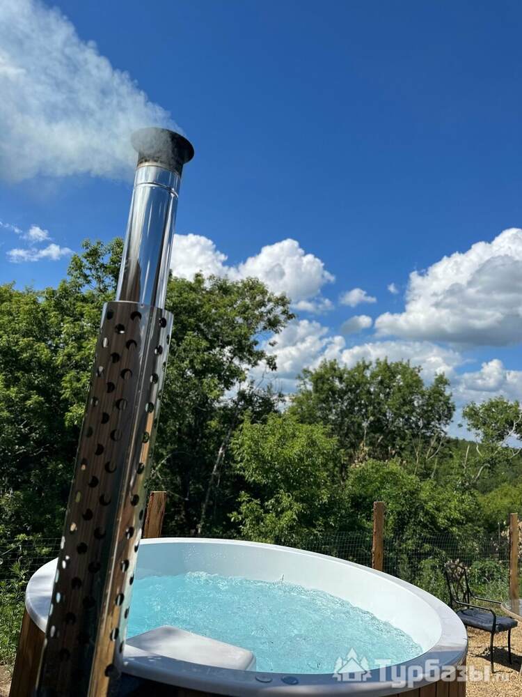 - Банный чан на дровах и открытая джакузи-зона, где можно расслабиться в тёплой воде на свежем воздухе с видом на лесные пейзажи.