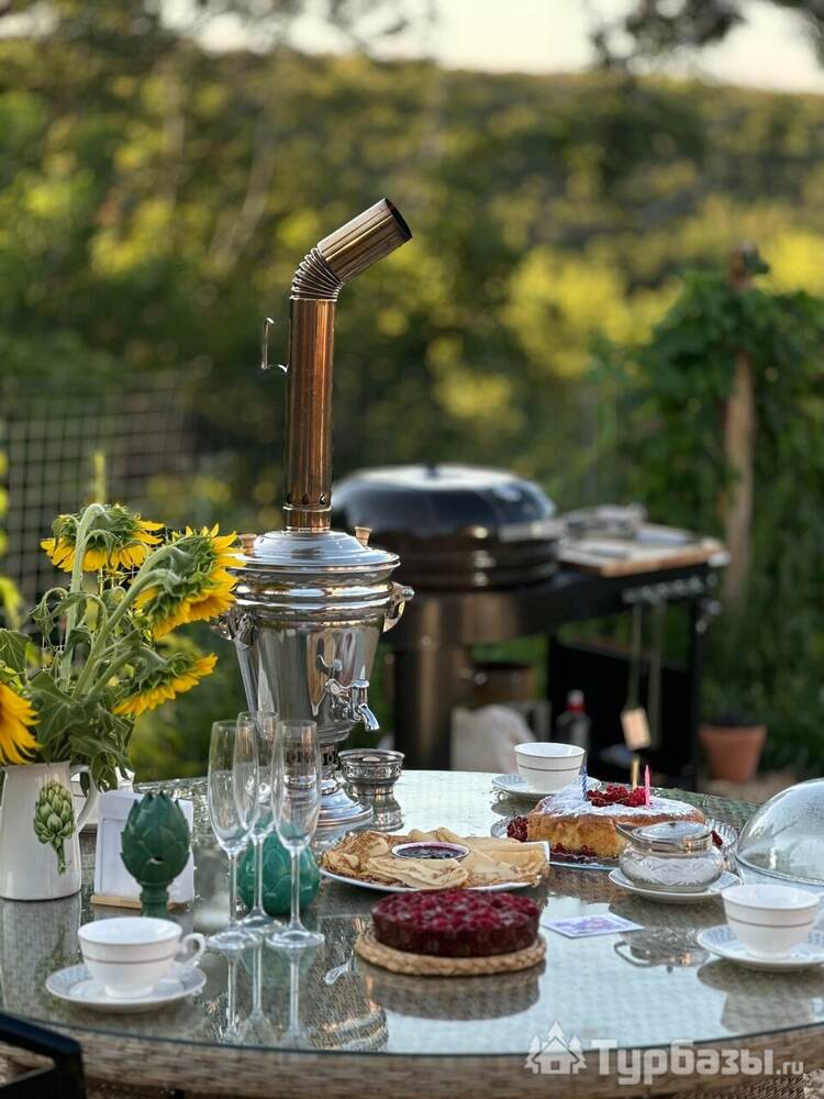 - Чаепитие с самоваром и русскими пирогами, которое организуют по желанию гостей как часть программы отдыха.