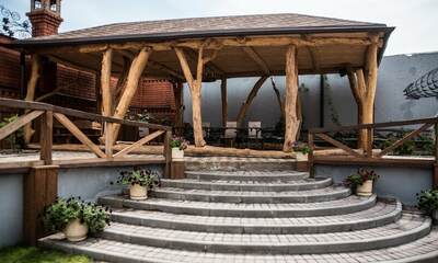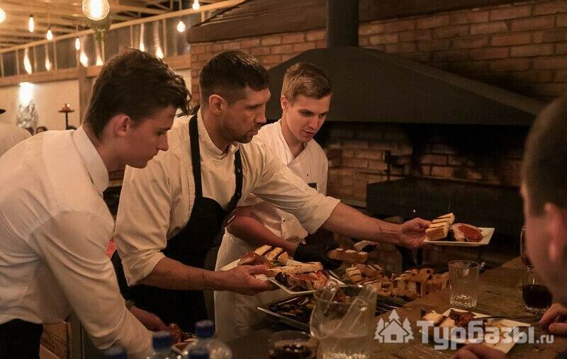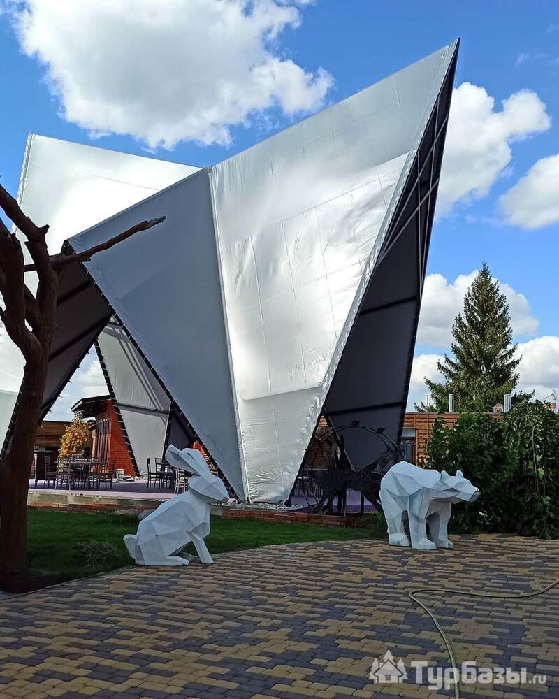 Площадка комплекса выстроена так, чтобы принимать события любого формата и при этом сохранять приватность для проживающих. Для свадеб, корпоративов и торжеств предусмотрены банкетные залы и беседки, оформленные с вниманием к атмосфере: свет и текстуры меняют впечатление от пространства, но не «перекрывают» саму природу. Ресторан и кухня работают в единой логике — блюда держатся в балансе между гостеприимной домашностью и ресторанной подачей — поэтому выбор места под банкет здесь часто обусловлен желанием получить и эстетичный зал и гастрономию в одном месте.