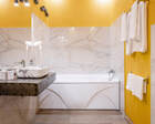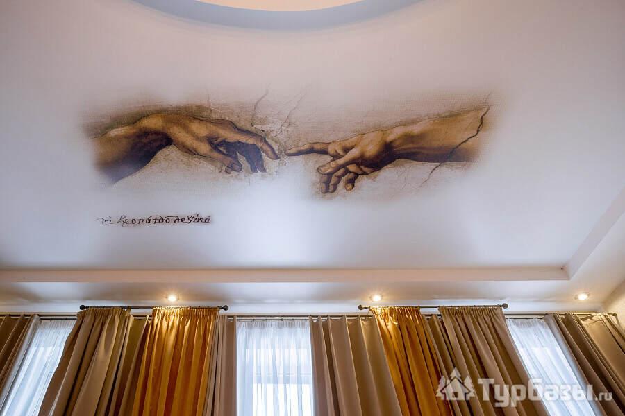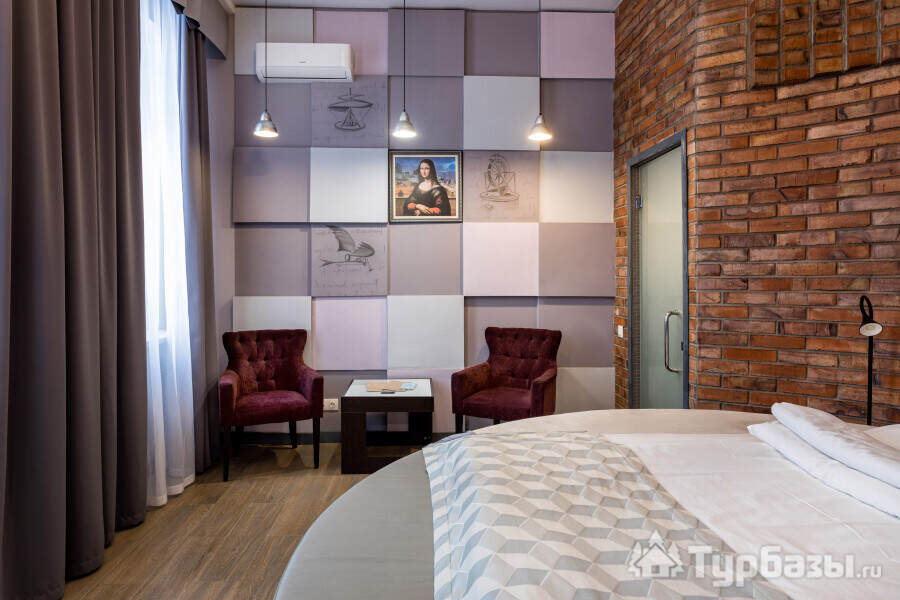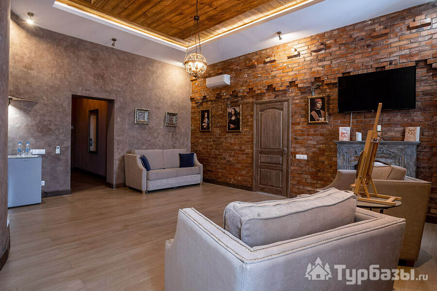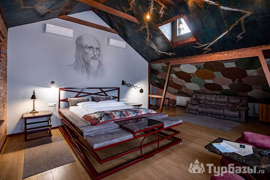 Архитектура и интерьер Villa Da Vinci играют роль первого впечатления и задают тон всему отдыху: здесь сочетаются металл и кирпич, дерево и мрамор, авторская мебель и текстиль, а художественные акценты — от фресок до мольберта в номере — делают пространство не просто комфортным, но и содержательным. Номера оформлены в разных жанрах: есть решения для романтического уик-энда, семейных заездов и тех, кто ценит эстетику интерьера — в некоторых апартаментах к отдыху добавлена творческая опция: мольберт и набор кистей, чтобы провести вечер за живописью. Такое сочетание практичного комфорта и художественных деталей превращает номер в точку вдохновения, где каждая мелочь продумана для живого опыта.