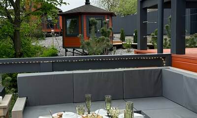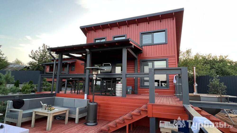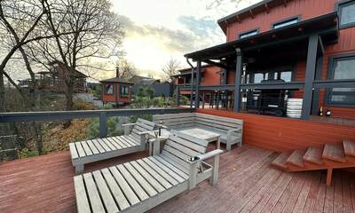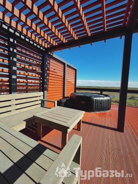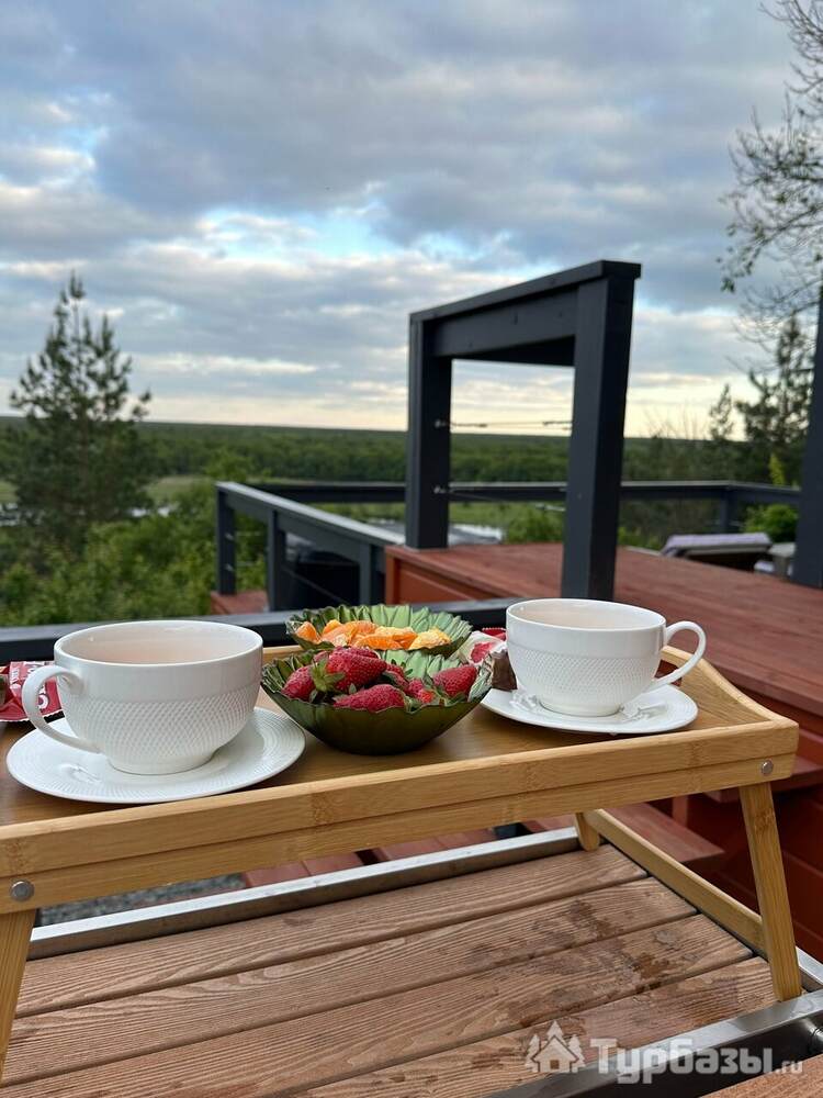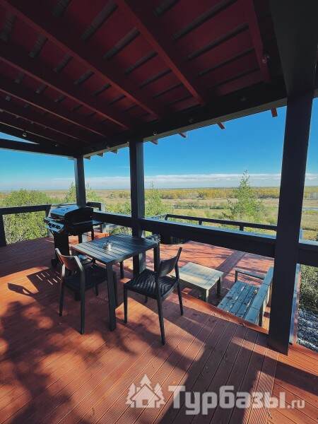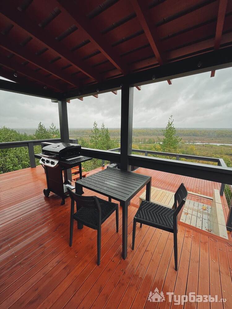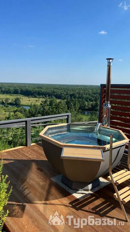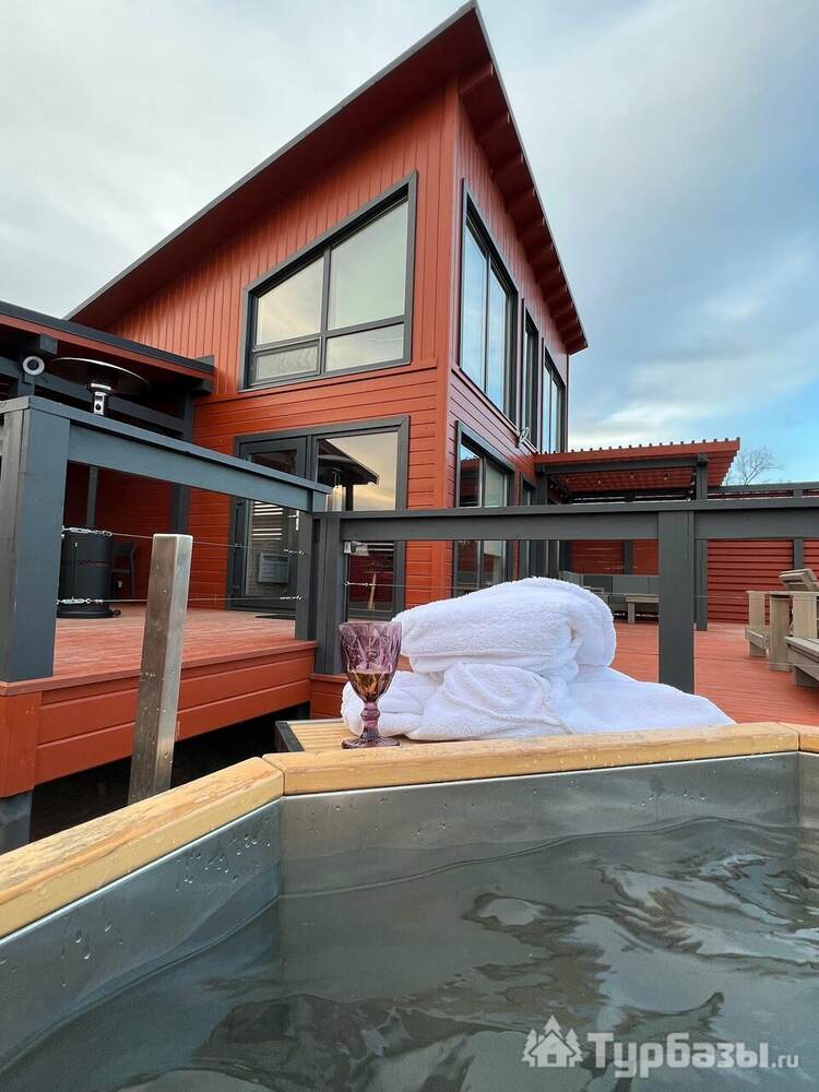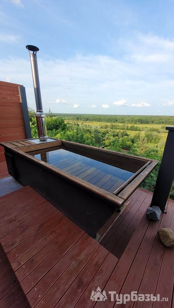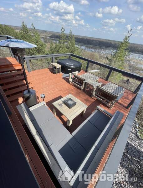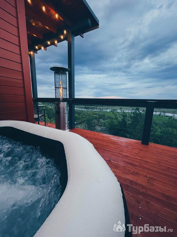У каждого дома есть собственная терраса с мебелью и шезлонгами, где можно отдыхать на свежем воздухе. В тёплый сезон к зоне отдыха добавляется джакузи с гидромассажем на открытом воздухе, откуда открываются живописные виды на лес и речной ландшафт.