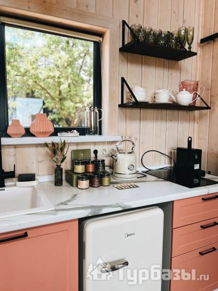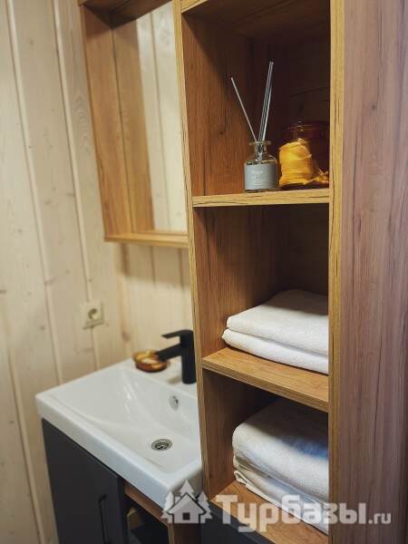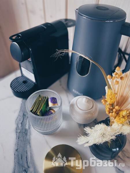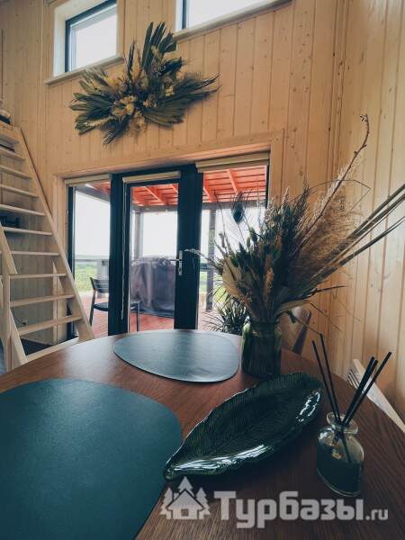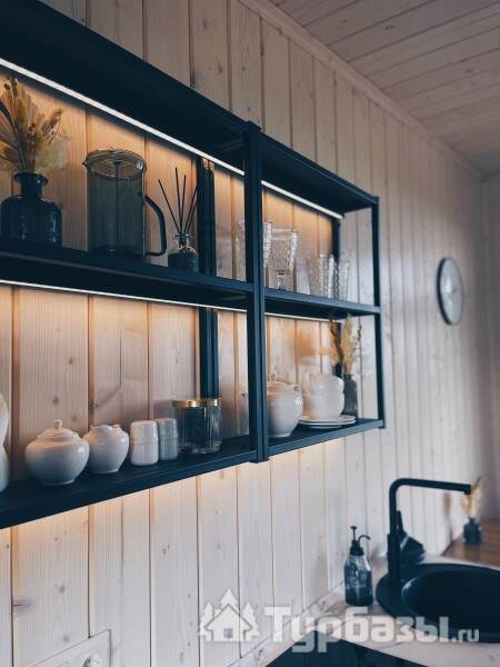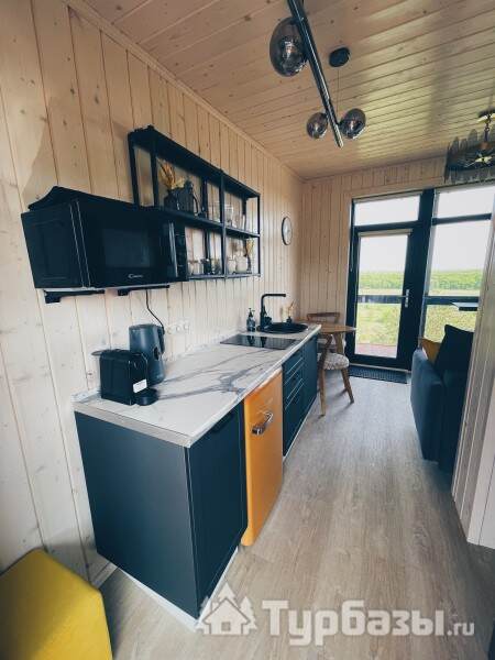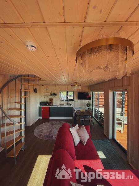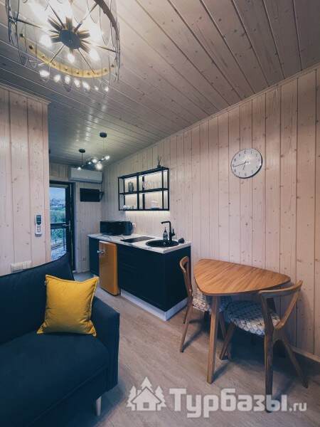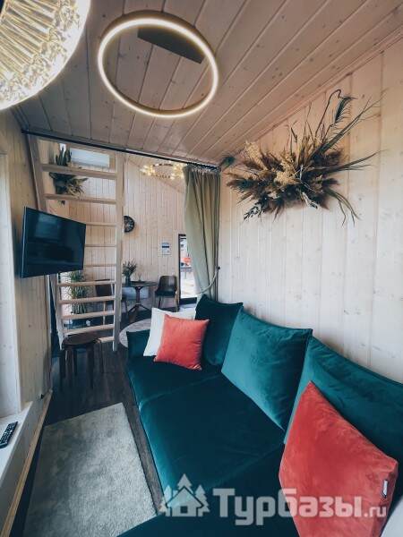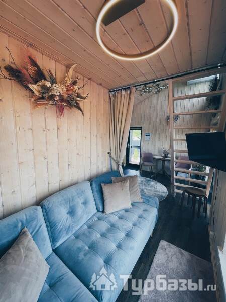 Интерьеры ориентированы на комфортное пребывание: домики оснащены бытовой техникой, есть климат-контроль (кондиционирование и отопление), а также современный мультимедийный уголок с Wi-Fi и Smart TV — это позволяет сочетать отдых на природе с удобством.