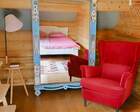 На территории стоят восемь деревянных домиков, каждый продуман до мелочей: лампы с мягким светом, традиционные предметы быта, кресла и ковры создают атмосферу уюта и домашнего тепла. Отдельная веранда с видом на Волгу и небольшой балкон — всё располагает к отдыху и чтению любимой книги.