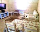 Деревянный домик рассчитан на 4 постояльца. Во всех комнатах обустроена современная мебель. Так же имеется кухня, ванная комната и санузел. Для самостоятельного приготовления пищи гости могут воспользоваться кухней.
