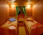 Проживание гостей осуществляется в двухместных и трехместных номерах. Кроме этого можно забронировать номер «Люкс». Так же на территории комплекса есть коттеджи и летние домики из дерева.